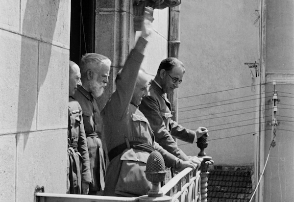 El apoyo de Berlín al que hacía referencia de manera sarcástica el belén valenciano se lo quiso cobrar Hitler a Franco durante la Segunda Guerra Mundial. Después del encuentro que mantuvieron el 23 de octubre de 1940 en Hendaia, el dictador español aseguró que se había resistido como gato panza arriba ante la insistencia de su homólogo alemán de que combatiera a su lado contra los Aliados.