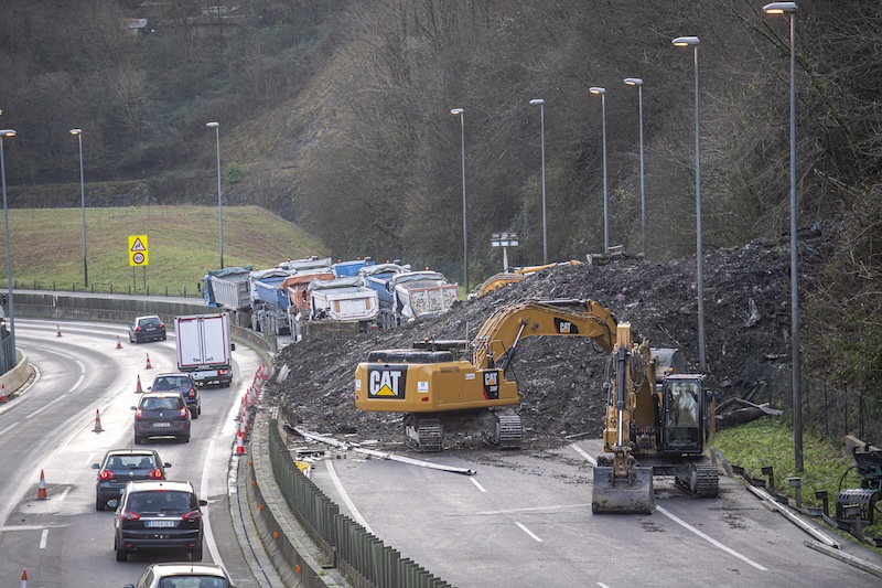 La reapertura de la AP-8 fue una prioridad para las instituciones desde el primer momento. Se instaló un «by-pass» ya a primera hora del viernes para esta vía principal del país. Y sin embargo, a lo largo de esta semana la búsqueda ha permanecido parada la mayor parte del tiempo, debido sobre todo a la posibilidad de nuevos desprendimientos.