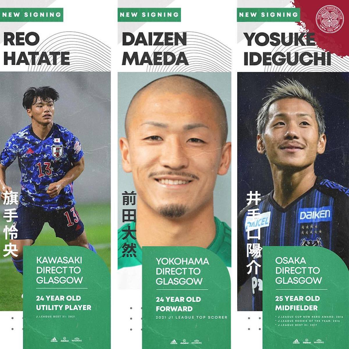 El 31 de diciembre de 2021, el conjunto escocés anunció la contratación de los futbolistas nipones Daizen Maeda, Reo Hatate e Yosuke Ideguchi a su plantilla. El trío se unía a su compatriota Kyogo Furuhasi, que había llegado meses antes al Celtic. Un grupo que se ha ampliado en los últimos días con el fichaje del prometedor defensa central Yuki Kobayashi. Confirmando así una apuesta a gran escala, cimentada tanto en el beneficio deportivo como el ecónomico. Buscando el aumento del impacto en nuevos mercados para un club con una identidad e historia de enorme calado, pero relegado a un segundo plano por las entidades que dominan el fútbol europeo en la actualidad.