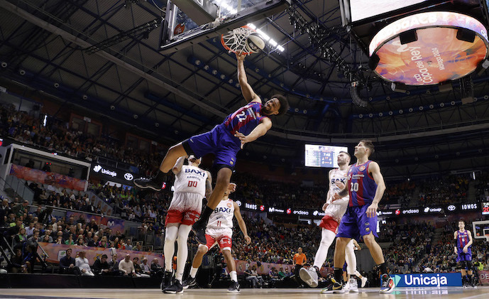 La lógica ha empezado a imponerse poco a poco. La defensa culé, capitaneada por Jan Vesely, ha frenado en seco la habitual fluidez ofensiva de Manresa, lo cual ha convertido cada enceste de los de Pedro Martínez en una heroicidad. Y una heroicidad ha sido el triple de Brandon Taylor sobre la bocina del descanso, contestando un tiro lejano anotado por Jabary Parker con anterioridad. En todo caso, los de Roger Grimau han podido afrontar la segunda mitad con un cómodo 50-43 a su favor.