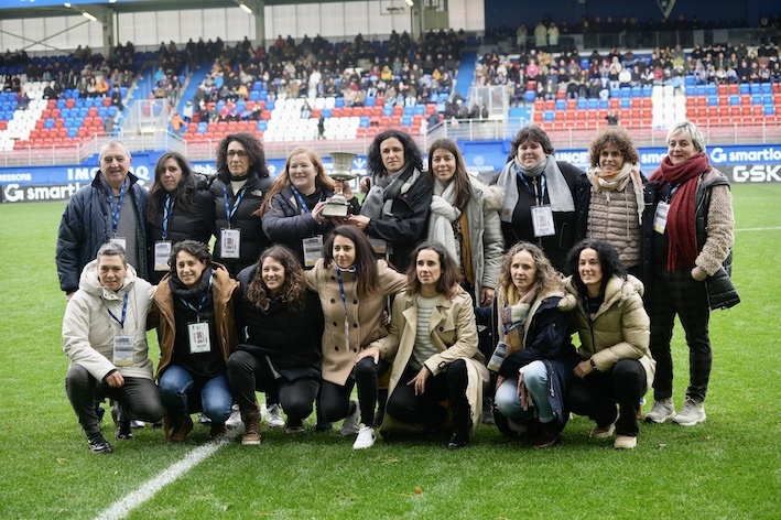No faltaron los jóvenes valores en otro derbi, el que enfrentó a Eibar y Real, pero en Ipurua también hubo una mirada al pasado. Las jugadoras del Eibartarrak, cuando se acaba de cumplir el 25º aniversario de que conquistaran las Eurocopas, saltaron al césped con el trofeo para ser homenajeadas por la afición.