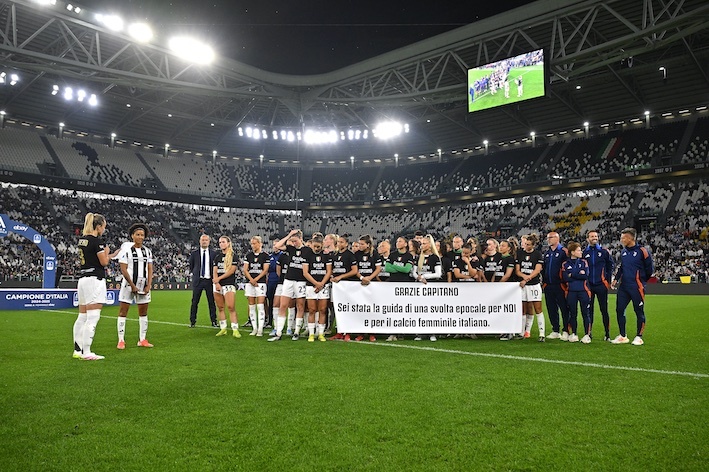 Por arriba, la Roma se impuso por la mínima a la Fiorentina y eso le permitió mantener la tercera plaza, que le asegura participar en la Champions una vez que la FIFA ha aumentado el cupo de la Liga italiana. Acompañará a Inter, que debutará en competición internacional, y Juve. Ambos se enfrentaron en el Allianz Arena en la última jornada de Liga, en un partido que acabó con victoria visitante pero que se convirtió igualmente en una fiesta para celebrar el título de las blanquinegras, asegurado desde dos semanas antes, y homenajear a Sara Gama. La defensa, de 36 años, pone fin a una carrera que arrancó en el Tavagnacco hace dos décadas aunque seguirá ligada al fútbol, en el que no solo ha destacado como jugadora, sino también como defensora de los derechos de las mujeres. Es una de las responsables de que el fútbol femenino italiano se profesionalizase y seguirá peleando por su mejora en el ámbito sindical.