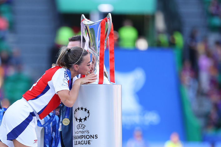 La delantera catalana se tiene que consolar con el subcampeonato y dos de las distinciones individuales de la Champions, ya que además de adjudicarse la Bota de Oro, ha sido incluida en el once de la Champions, que completan Van Domselaar, Fox, Williamson, Mariona, Russo (Arsenal), Mapi León, Aitana Binmatí, Patri Guijarro (Barcelona), Baltimore (Chelsea) y Dumpornay (OL Lyonnes). Además, Bonmatí ha sido elegida como mejor jugadora del campeonato y Melchie Dumornay como mejor jugadora joven.
