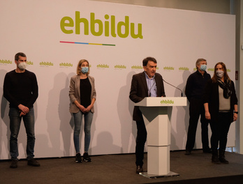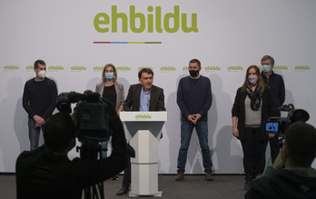 Iñigo Iruin, ante los cinco encarcelados por el caso. (EH Bildu)
