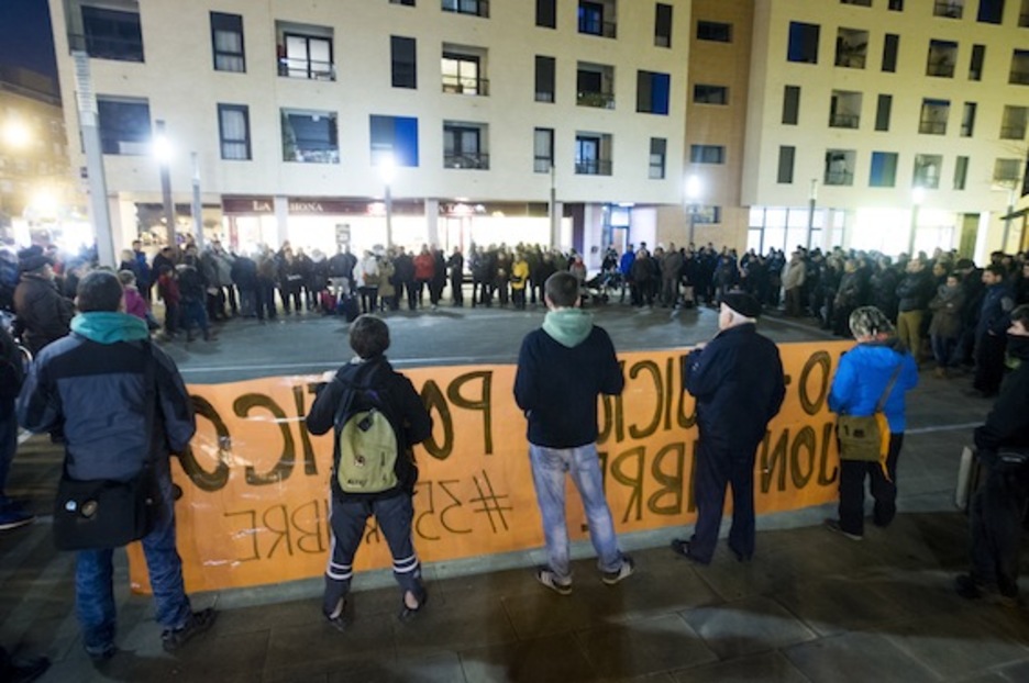Elkarretaratzea Intxaurrondon, bereziki Arantxa Aparicioren atxiloketa salatzeko. (Gorka RUBIO/ARGAZKI PRESS)