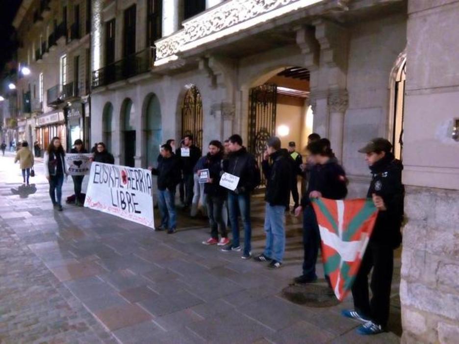 Barakaldon, Jabi Carvallidoren etxea miatzen zuten bitartean ere egin dute protesta. (@Sortu_Barakaldo)