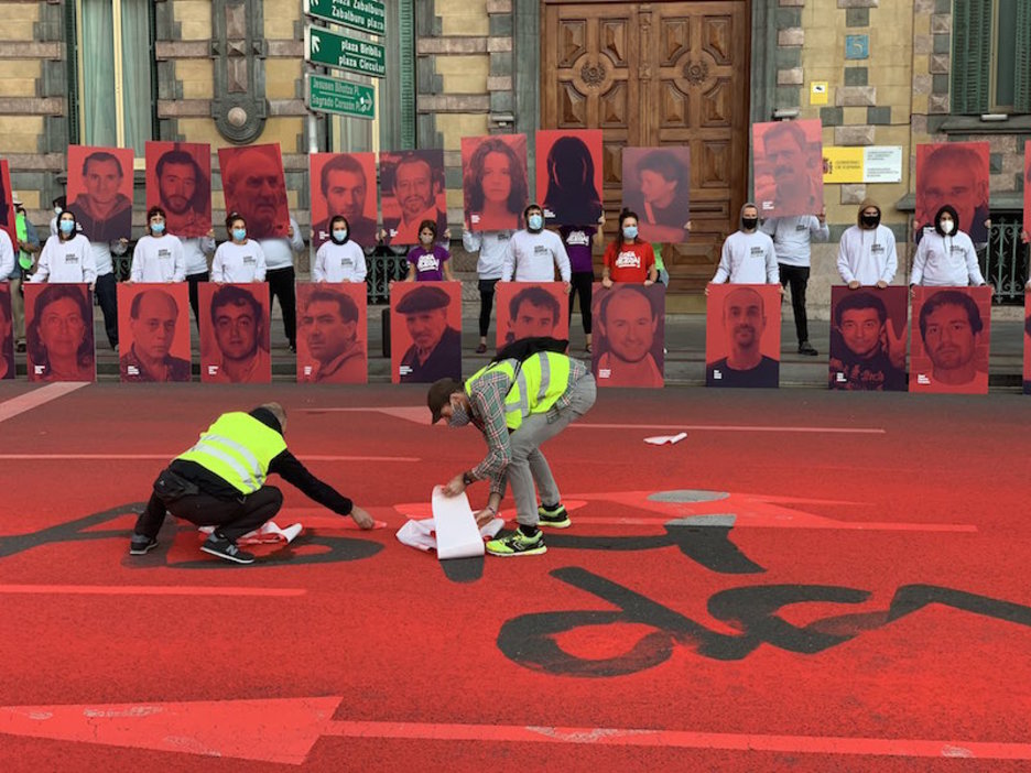 49 biktimen aurpegi eta izenak, Gobernu espainolari enplazamendua egiten. (Aritz LOIOLA | FOKU)