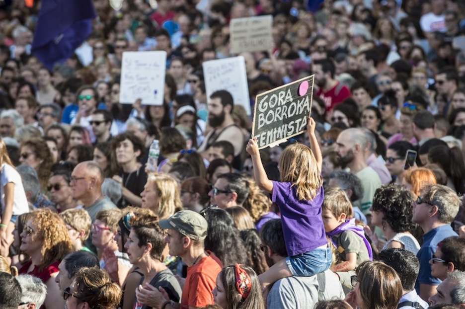 Biktima nor den, eta erruduna nor, nabarmendu dute plazan ikusitako mezuek.