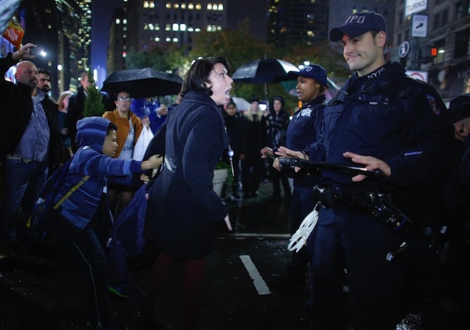Una mujer se encara a un policía en Nueva York. (Kena BETANCUR/AFP)