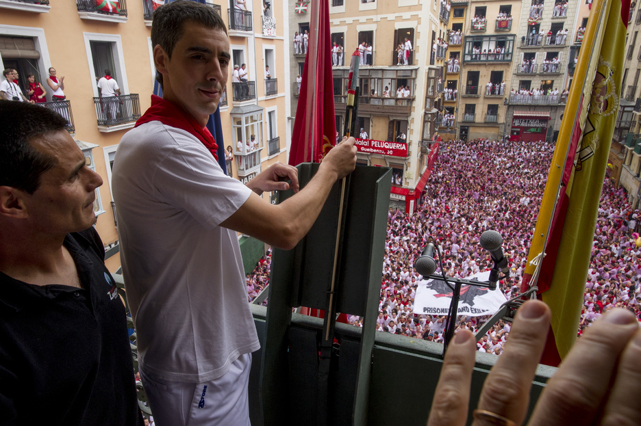 Peio Martinez de Eulate Udaletxeko balkoian txupina jaurtitzeko prest. (Iñigo URIZ / ARGAZKI PRESS)