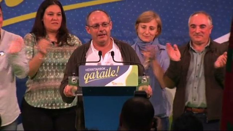 Donostiako Kursaalean egin dute hauteskunde emaitzak jakin osteko balorazioa EH Bilduko ordezkariek. Bertan, besteak beste, hartu dute hitza Gipuzkoako ahaldun nagusi izateko koalizioak aurkeztu duen Xabier Olano eta Juan Karlos Izagirre Donostiako alkateak.