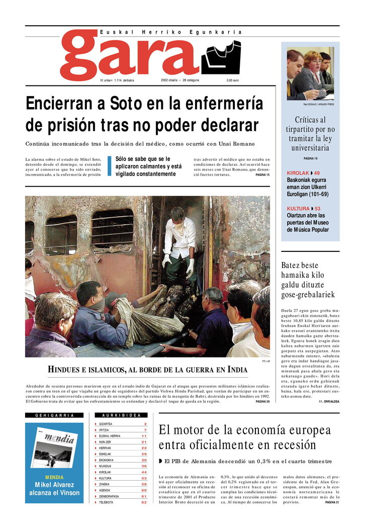 Un pronunciamiento unánime de la prensa vasca ante el cautiverio de Pablo González Iñaki Altuna 2024.02.28