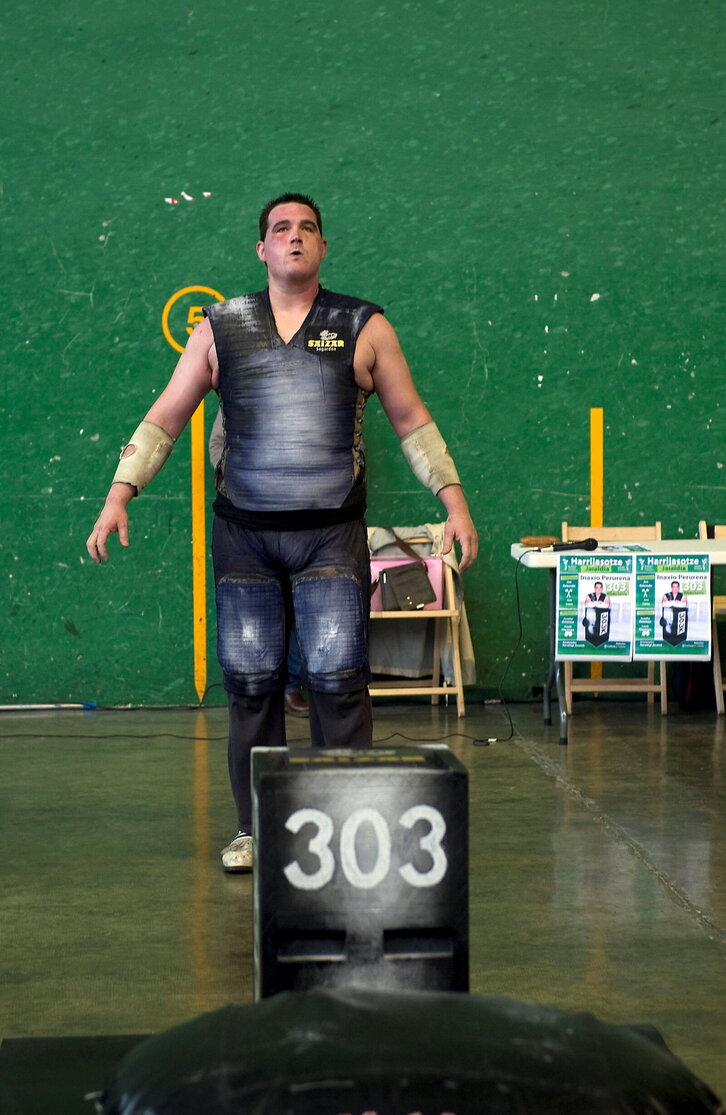 Inaxio Perurena 303 kiloko harria jaso nahian Leitzan. Ezin izan zuen.