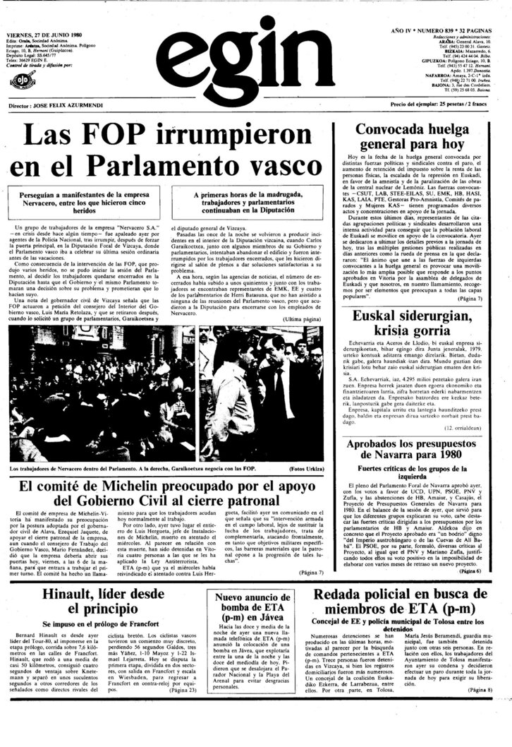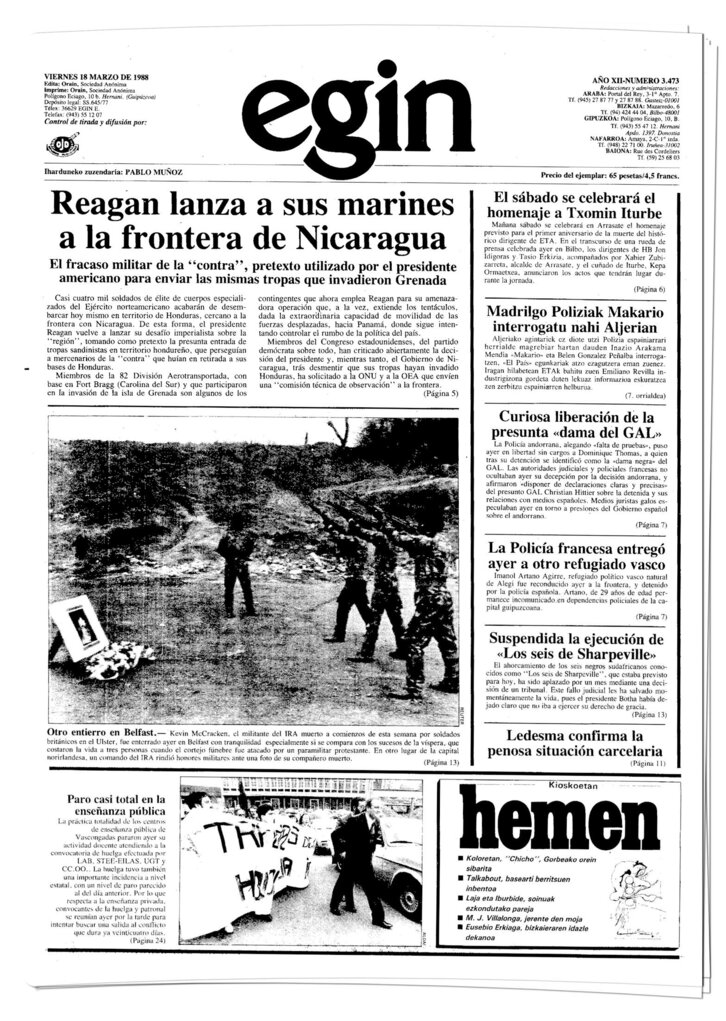 Estatu terrorismoak, garai hartan, BVE siglak erabiltzen zituen. Jokin eta Espe eibartarrak, nire lehengusuak, Caracasen, Venezuelan, erail zituzten errefuxiatuak laguntzeagatik.