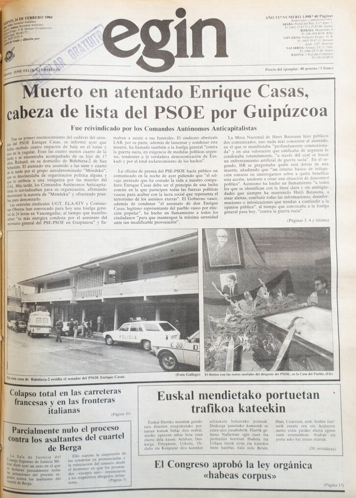 El «enfrentamiento» que no fue en Pasaia: 113 disparos contra ninguno y cuatro muertes impunes Ramon Sola 2024.03.22