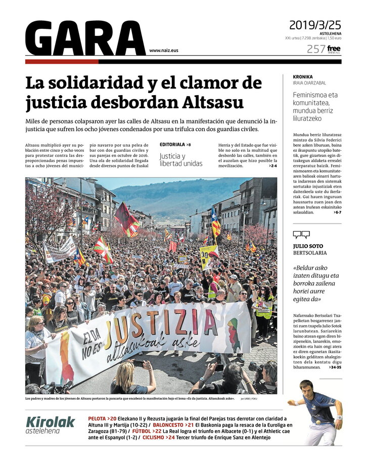 [2019/03/02] GARA-k bilkura zabala egin zuen Kursaalean bere kontrako espoliazioari erantzuteko kanpaina aurkezteko. 10.000 harpidetza berri lortzea zen helburua, eta lortu ziren!