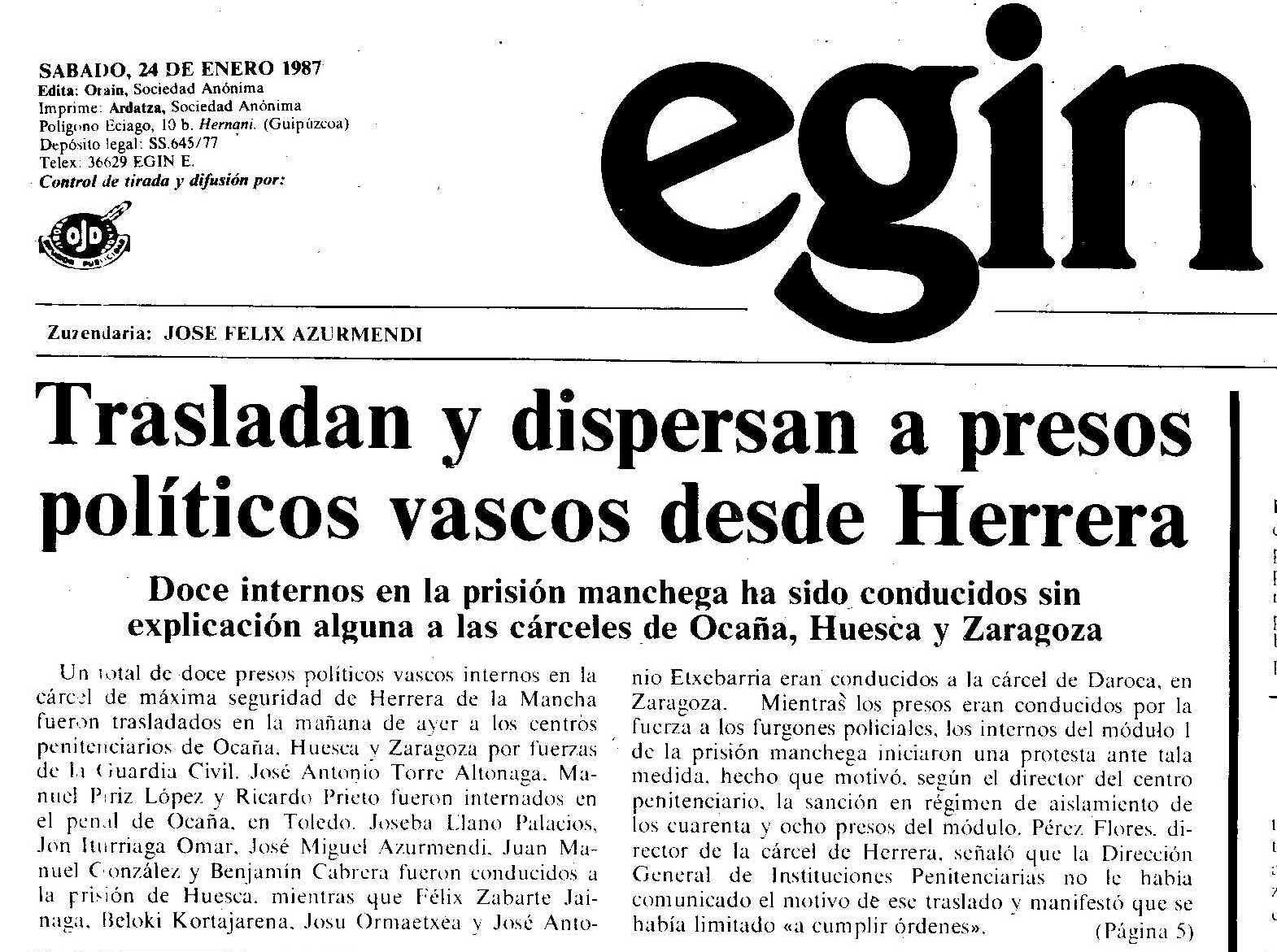 En las cárceles españolas la situación de los prisioneros y prisioneras vascas se siguió deteriorado y la tensión iba en aumento, con continuas protestas y huelgas de hambre, numerosos traslados de prisión, sanciones y palizas.