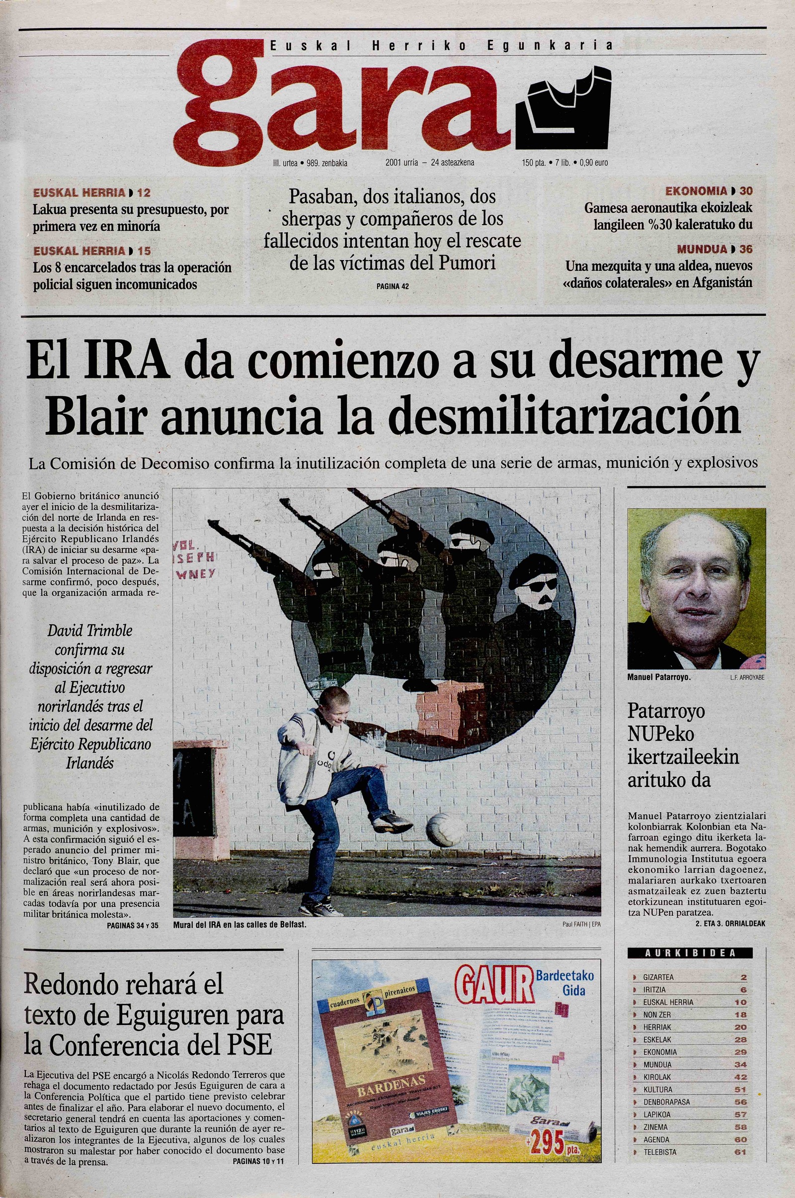 Urtea hasi zenean, Ipar Irlandako bake prozesua larri zaurituta zegoen. Hala ere, negoziazioek aurrera jarraitu zuten, akordio sendo bat lortu arte. Ondorioz, urriaren 23an IRAk desarmatzen hasia zela iragarri zuen, eta Tony Blairrek Irlandako lurretik soldaduak erretiratzen jarraitu zuen.