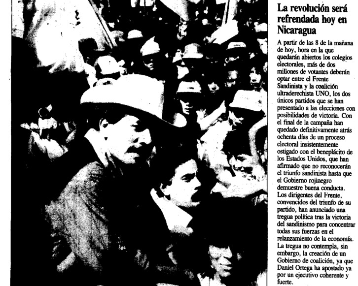 Un día como hoy, en 1990, se celebraron las elecciones que sacaron del poder al sandinismo en Nicaragua, poniendo fin a una de las experiencias revolucionarias más originales de América Latina. La medida de la sorpresa causada por la derrota del FSLN la da la portada de ‘Egin’ de la misma jornada electoral, en la que aseguraba, con fotografía de Daniel Ortega incluida, que «la revolución será refrendada hoy en Nicaragua».