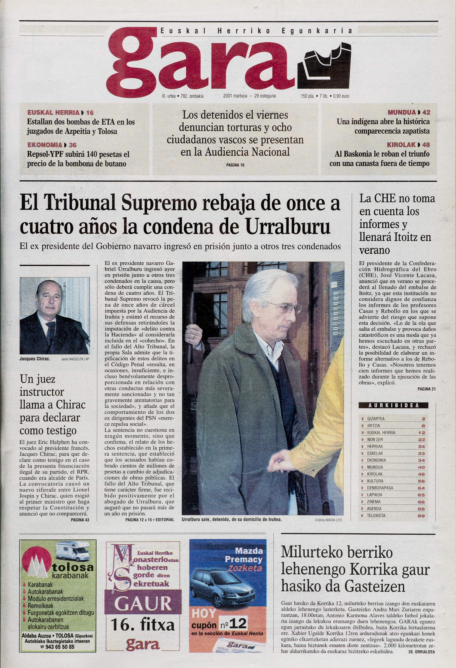 Ingresó en prisión tras un largo proceso judicial que se inició en 1994 y que concluyó un día como hoy en 2001 con la sentencia del Tribunal Supremo, que finalmente dejó en solo cuatro años la condena inicial de 11 impuesta por la Audiencia Provincial de Nafarroa.