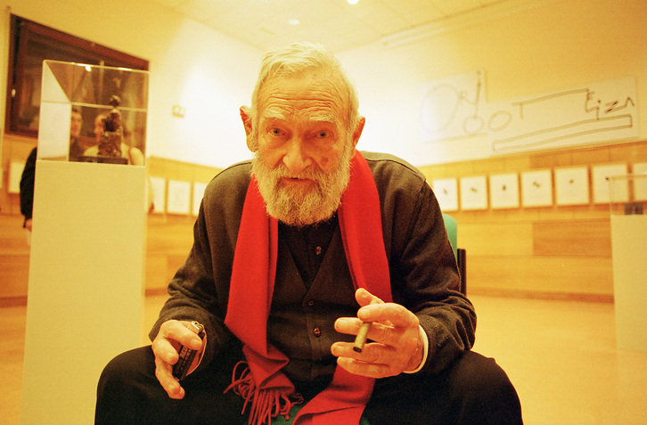 Medikuek lasai hil zela kontatu zuten 2003ko apirilaren 9an, bere bizitzako azken urteetan hain jenio bizikoa izandako Jorge Oteiza lasai pausatu zela bizitzaren azken unean. Orioko hondartzan, hondarretan egindako zuloan ezkutatzen zen haurraren begirada hura nonahi suma daiteke oraindik.
