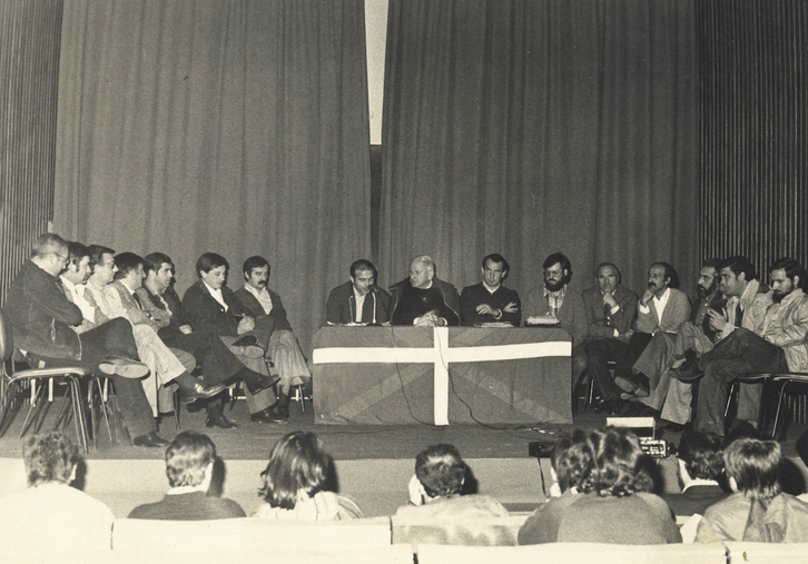 Bergaran HBren sorrerari sostengua adierazteko Altsasuko Mahaiak 1978an antolaturiko ekitaldia. (Javier GALLEGO | EGIN)