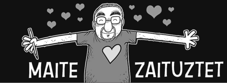 Cuenta Etayo –o Tasio, vaya– para este Artefaktua que desde muete llenaba sus cuadernos de notas con muñequicos tratando de emular al gran Ibáñez y sus mortadelos. «Dibujaba por todos los lados –confiesa– y, a base de copiarle y copiarle, me acabó saliendo un estilo sin buscarlo».