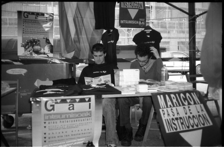 Fueron años de brutal represión, pero también de empoderamiento y politización de los maricas que elegían la cárcel antes que la mili o la Prestación Social Sustitutoria. «Salir del armario es también salir de estas instituciones y leyes, hacer público nuestro rechazo a los valores militares, negarnos a colaborar con el Servicio Militar y con sus Prestaciones Antisociales Sustitutorias, denunciar la homofobia de los ejércitos en los juicios por insumisión, denunciar la homofobia de las cárceles con las que nos castigan», reivindicaron los militantes de EHGAM. Y así lo hicieron hasta que en 2001 se logró acabar con la mili obligatoria.