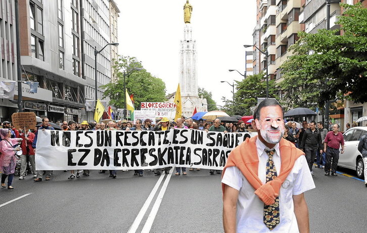 Básicamente, el rescate bancario consistió en una inyección de dinero público y semipúblico a unas entidades financieras que, según nos recordó Txisko Fernández en GARA el décimo aniversario de esta operación, se hundían «en las turbulentas aguas de la crisis financiera global que siguió al estallido de la burbuja inmobiliaria en 2008. Una burbuja que, a escala local, habían contribuido a inflar a pleno pulmón tanto la banca privada como los sucesivos gobiernos que se subieron a una de las olas más vertiginosas impulsadas por el neoliberalismo: la 'política del ladrillo'».