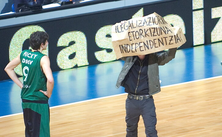 Saskibaloiko Errege Kopako finala eten du pertsona batek alderdien legez kanporatzea salatuz Buesa Arenan.