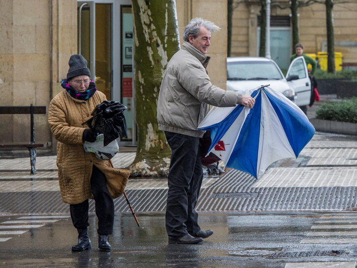 Jendea haize eta euriarekin borrokan Donostian ziklogenesi alerta emanda dagoela.