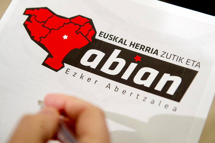 Ezker abertzalearen 'Abian' eztabaida prozesuko txostena aurkeztu dute Igor Arroyo eta Marije Fullaondo bozeramaileek.