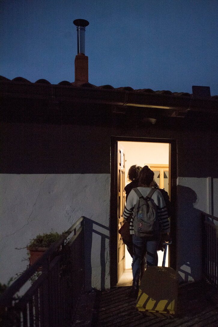 Ikasleak Ataungo Aldarreta baserrira sartzen, bertara jende asko etorri da euskara ikastera.