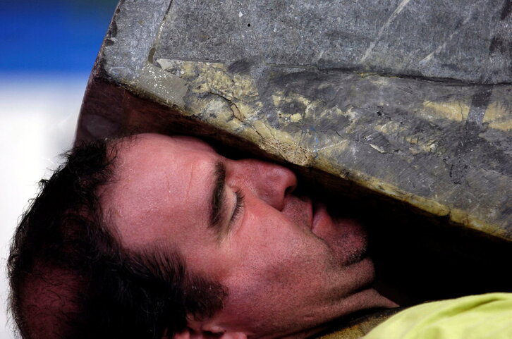 Mieltxo Saralegi 250 kiloko harria jasotzen Arabako Espejo herrian.