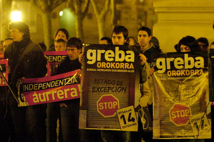 Ezker abertzaleko ordezkarien atxiloketak salatzeko eta greba orokorra deitzeko elkarretaratzea Gasteizen.