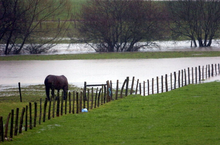 Zaldi bat Nafarroako iparraldean emandako uholdeetan.