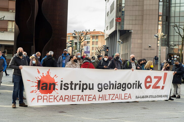 Gehiengo sindikalaren elkarretaratzea Barakaldon asteartean gertatutako lan-istripu hilgarria salatuz.