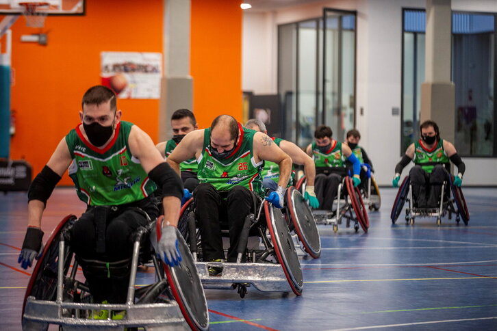 Gasteizko Zuzenak, elbarrien errugbi taldearen entrenamendua.
