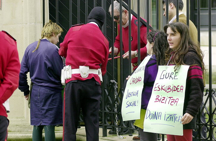 Bazterketa sozialaren aurkako plataformetako kideak Gasteizko Parlamentuan kateatuta.