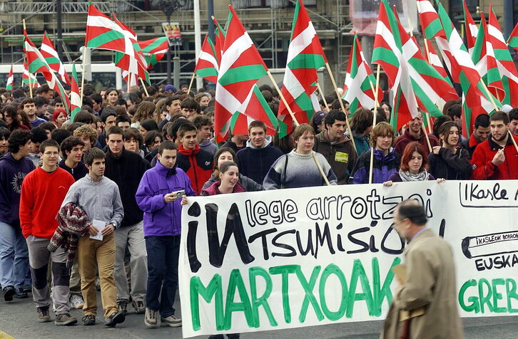 Ikasle Abertzaleak-en manifestazioa Bilbon lege arrotzen aurrean intsumisioa aldarrikatuz.
