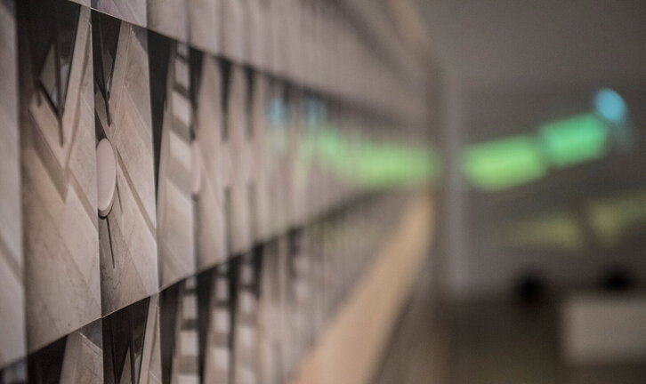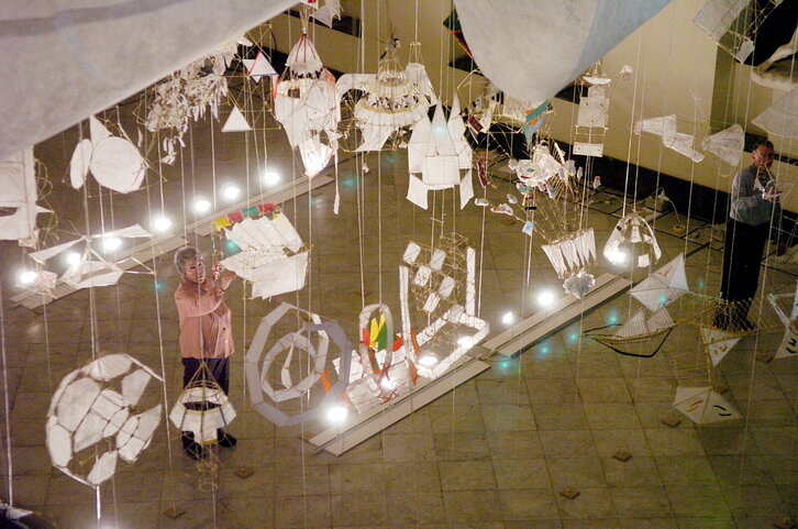 'Egitura eta forma' erakusketaren muntaia Arte eta Lanbide Eskolako paraninfoan.