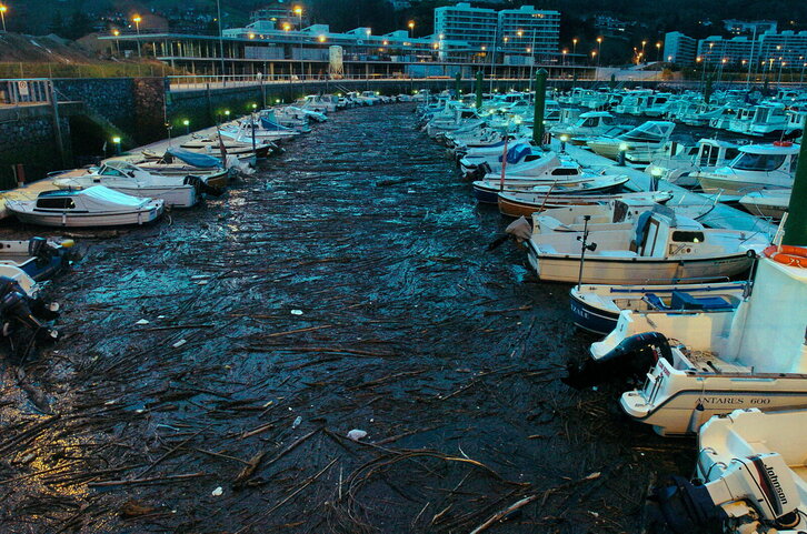 Hondarribiko kirol-portua Bidasoak eramandako egurrez beteta.