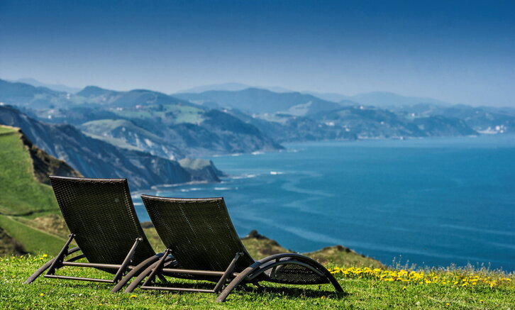 Bi etzaulki itsasora begira Zumaia-Deba GeoParkean.