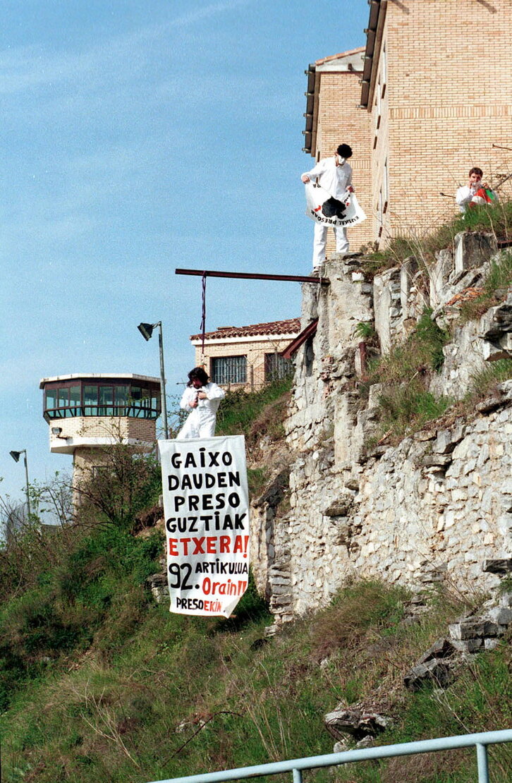 'Gazteak abian' Jarrairen ibilaldia Martuteneko espetxe aurrean.