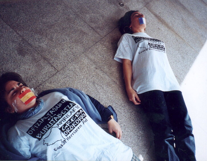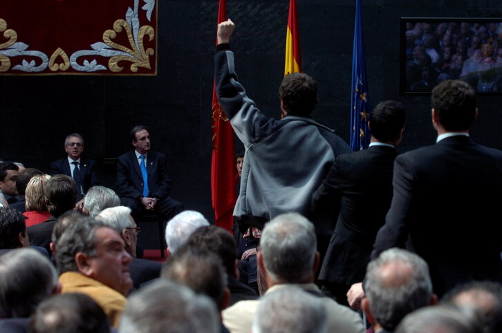 Igor Arroyo ezker abertzaleko parlamentari ohiaren protesta Nafarroako Parlamentuaren 30. urteurrenean.