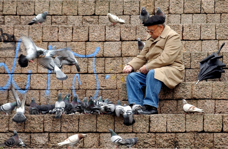 Gizon bat usoei jaten ematen Gasteizen.