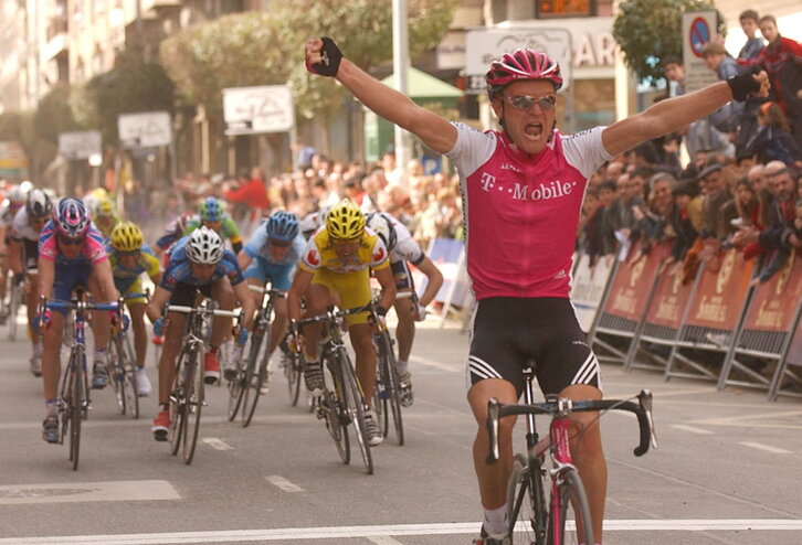 T-Mobile taldeko Matthias Kessler alemana Lizarran Txirrindularitza profesionaleko Miguel Indurain Sari Nagusian.