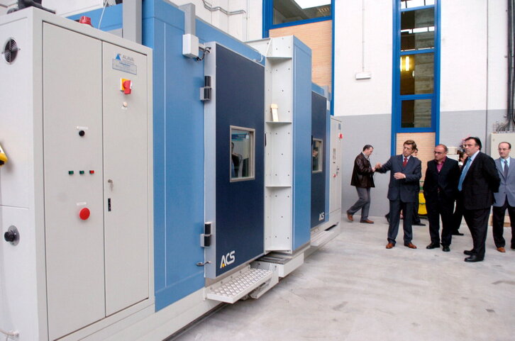 Eusko Jaurlaritzako sailburu Javier Madrazo arlo termikoko Kalitatearen Kontrolerako Laborategiaren aurkezpenean.
