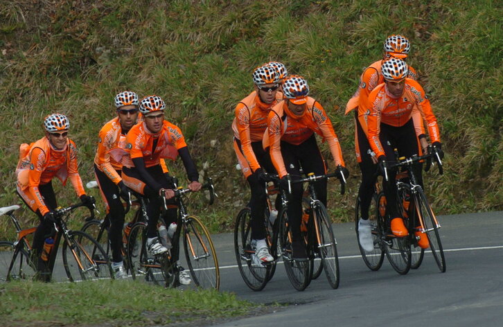 Euskaltel Euskadiko txirrindularien entrenamendua Bergaran Euskal Herriko Itzuliari begira.