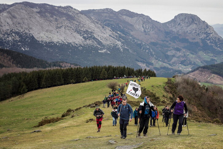 Aitzina eta Ernai gazte antolakundeek antolaturiko mendi martxa Lekunberritik igarotzen.